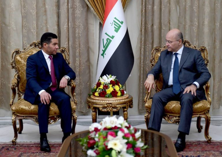 بيان: استقبل سيادة رئيس الجمهورية الدكتور برهم صالح بقصر السلام في بغداد رئيس المشروع الوطني العراقي الشيخ جمال الضاري، وجرى خلال اللقاء بحث آخر المستجدات على الساحة السياسية، حيث أكد رئيس الجمهورية أهمية تجاوز الخلافات بين الفرقاء السياسيين واعتماد مبدأ #الحوار في حل المسائل العالقة خدمة للعراق وشعبه وحفاظاً على المكتسبات الديمقراطية وتحقيقاً للإستقرار الأمني والسياسي والاقتصادي في البلاد، كما أشار سيادته إلى ضرورة توحيد الصف الوطني في مواجهة #الإرهاب والتطرف وحماية حقوق المواطنين في حياة حرة كريمة.